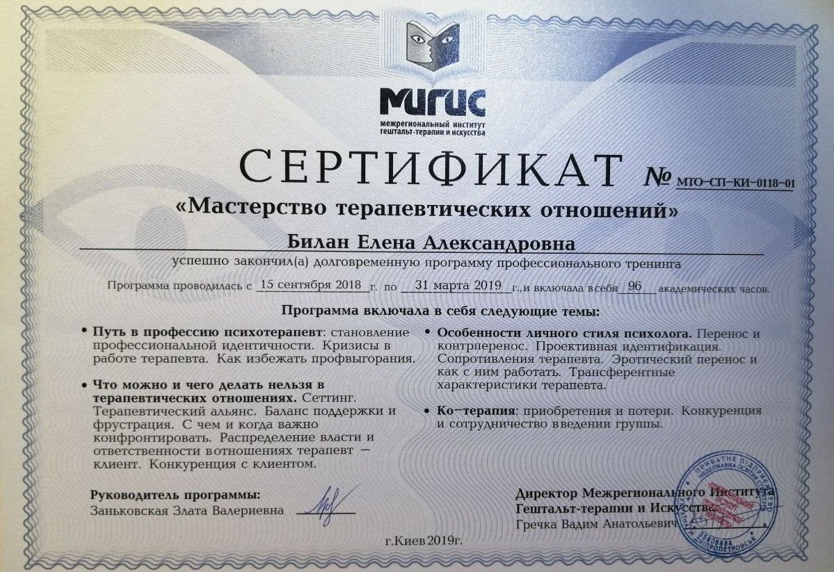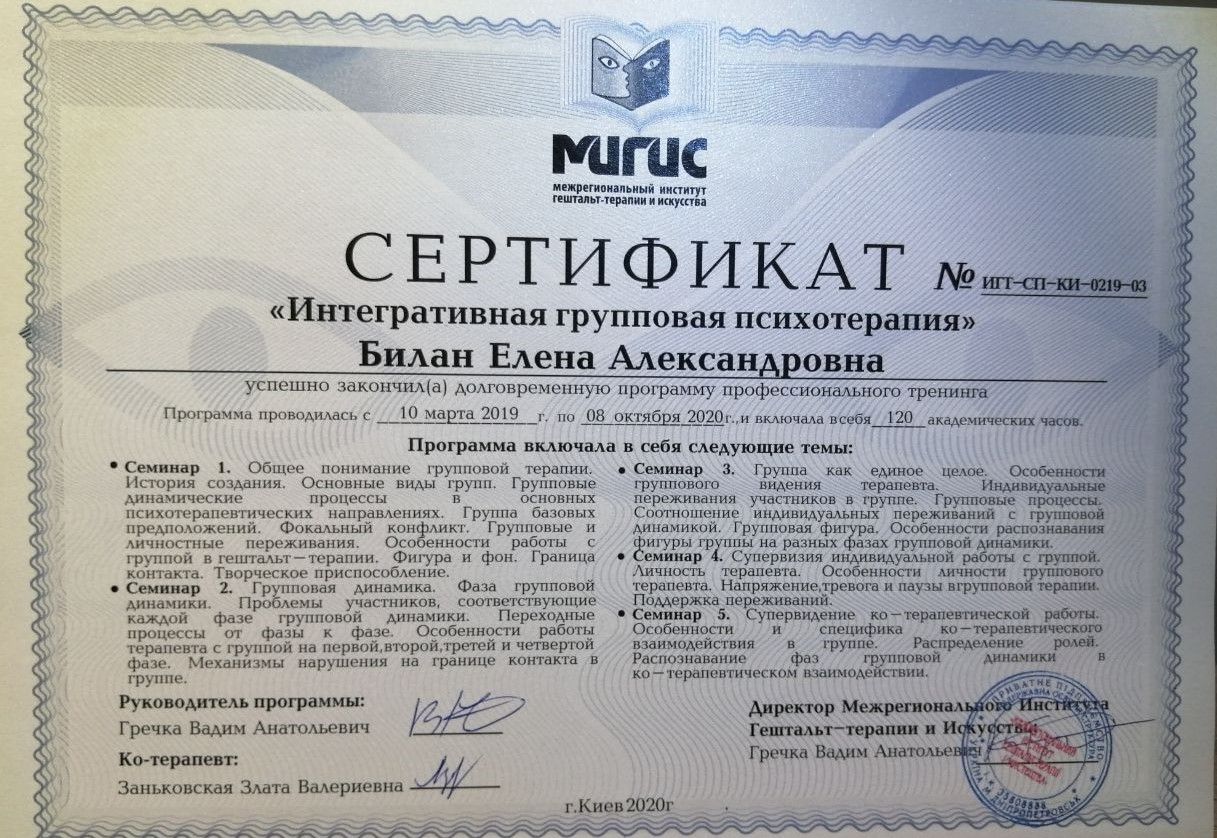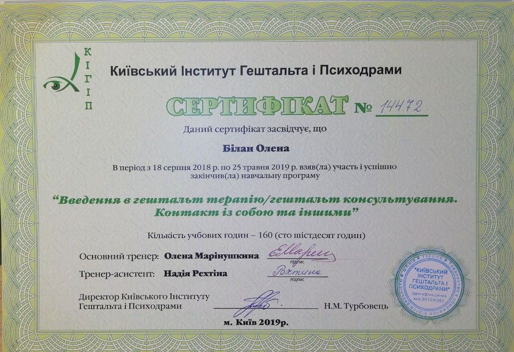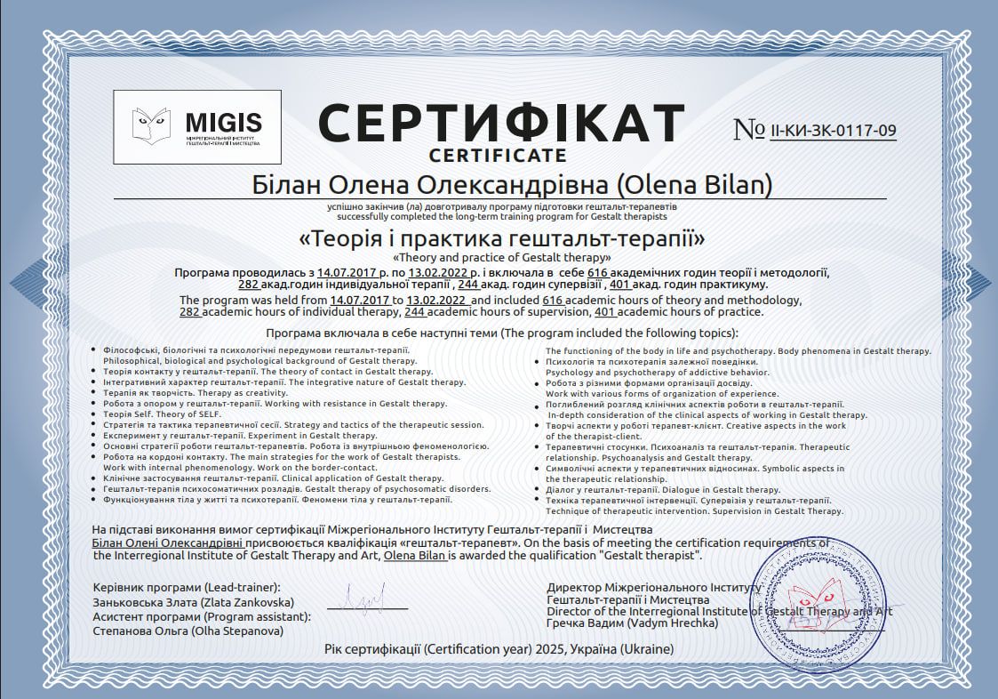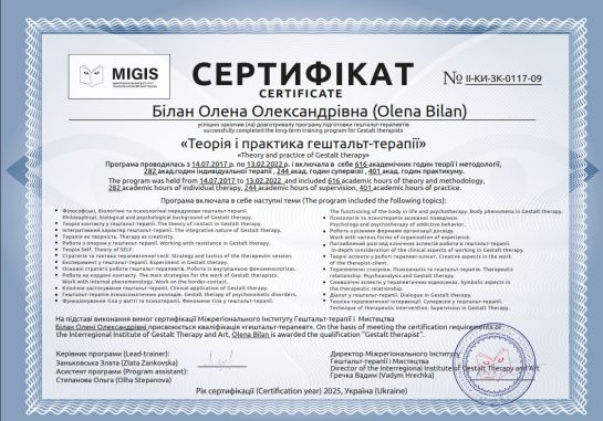 Certified Gestalt therapist