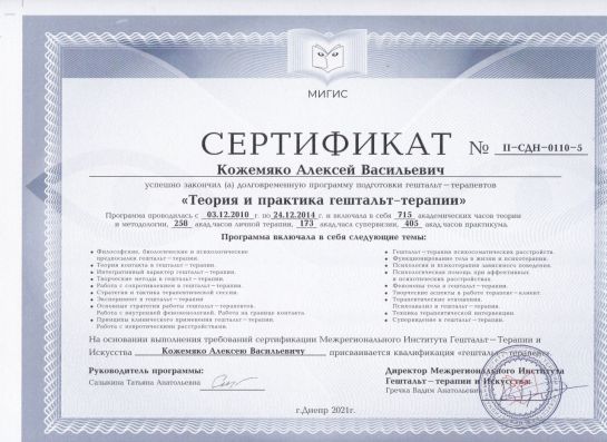 Certified Gestalt therapist