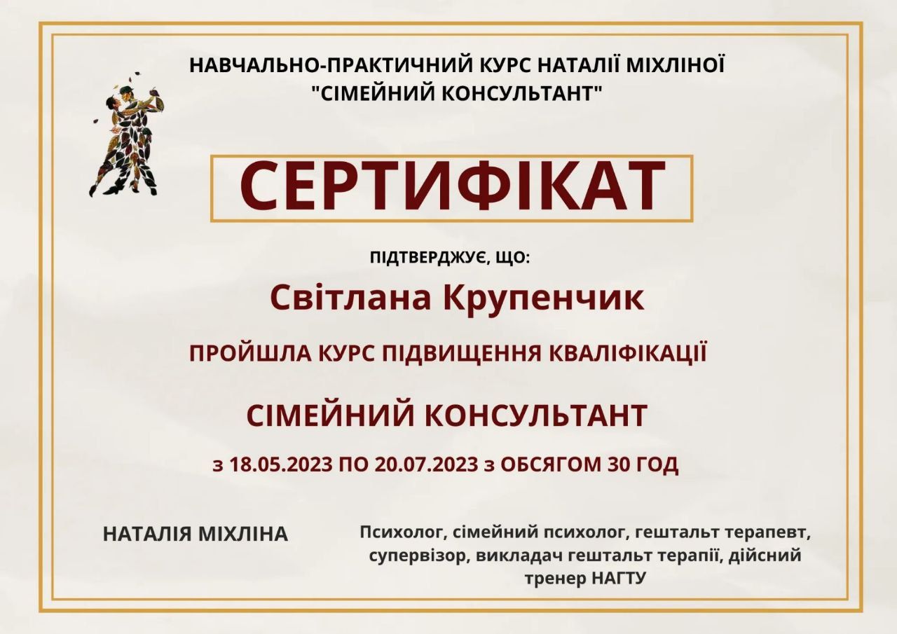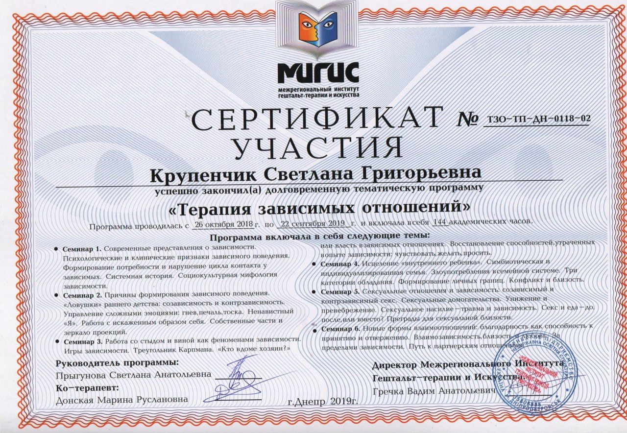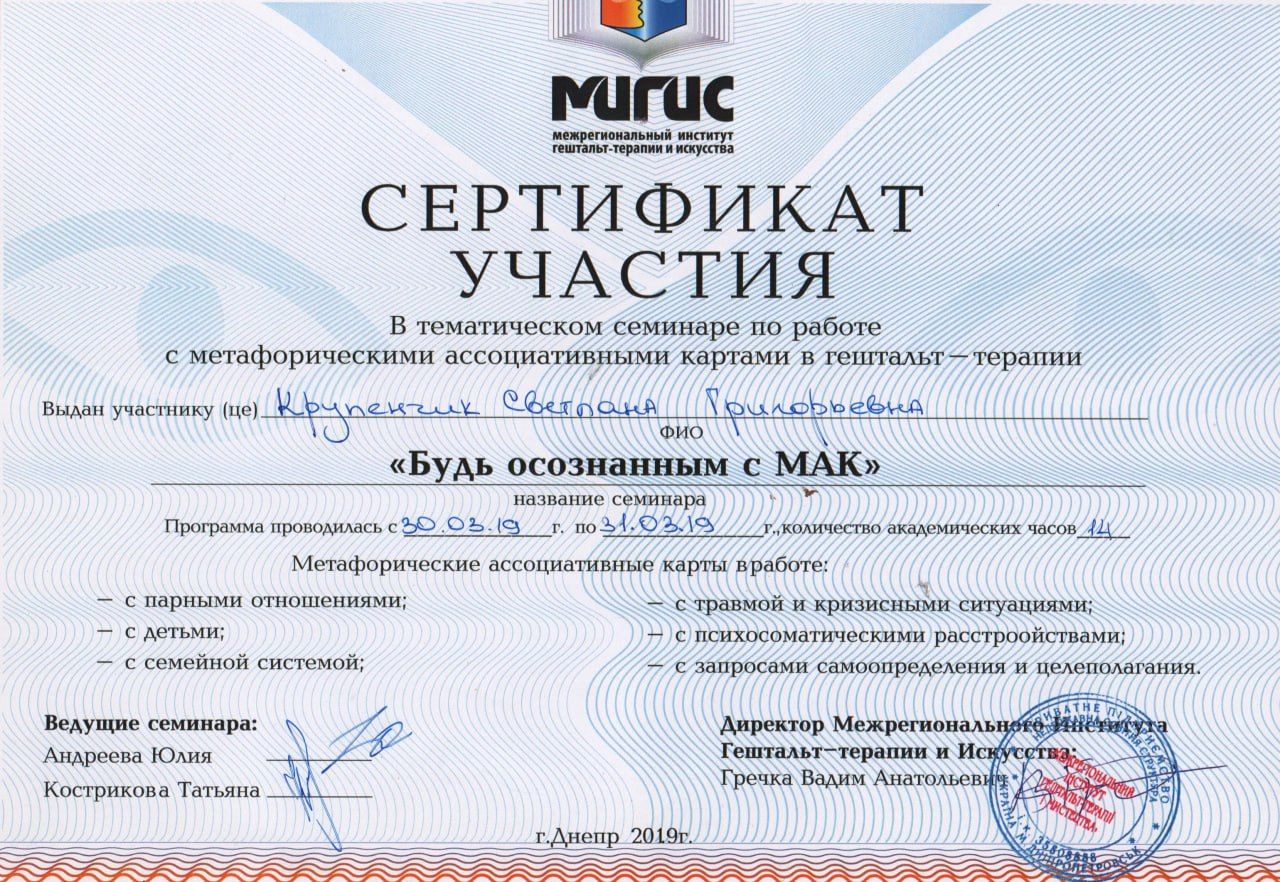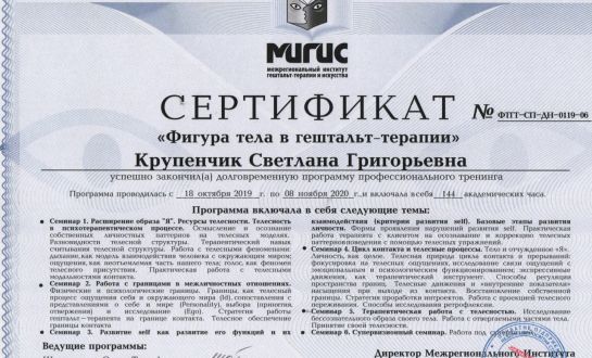 Certified Gestalt therapist