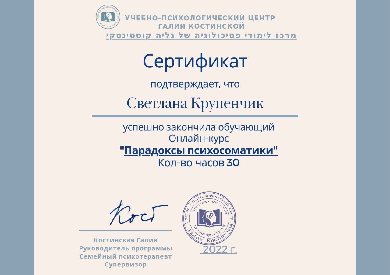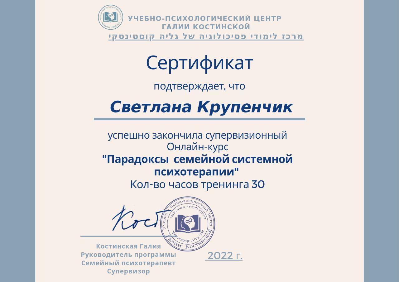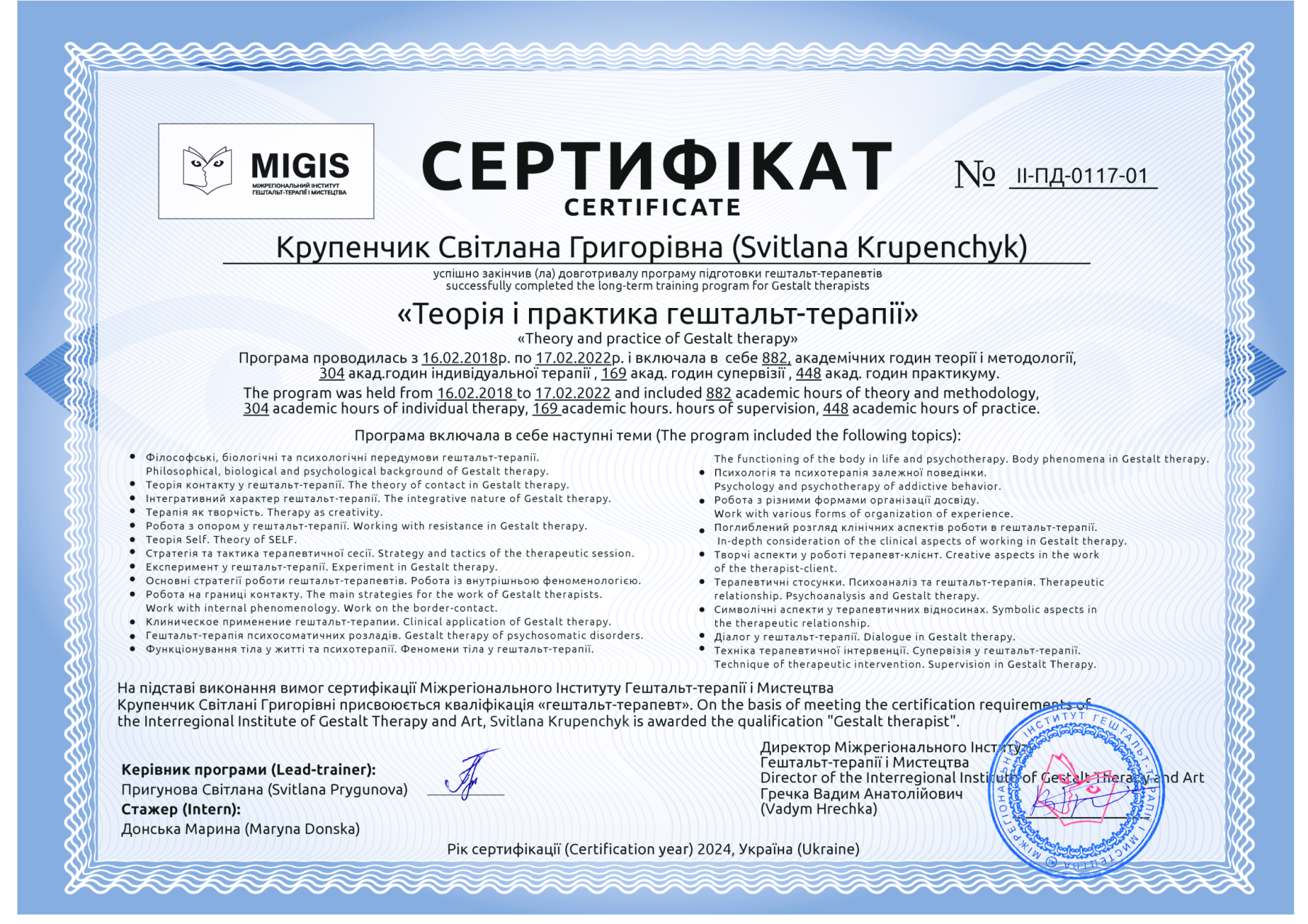 Certified Gestalt therapist