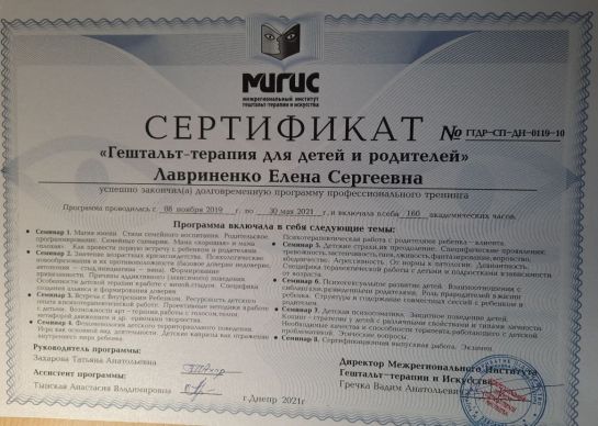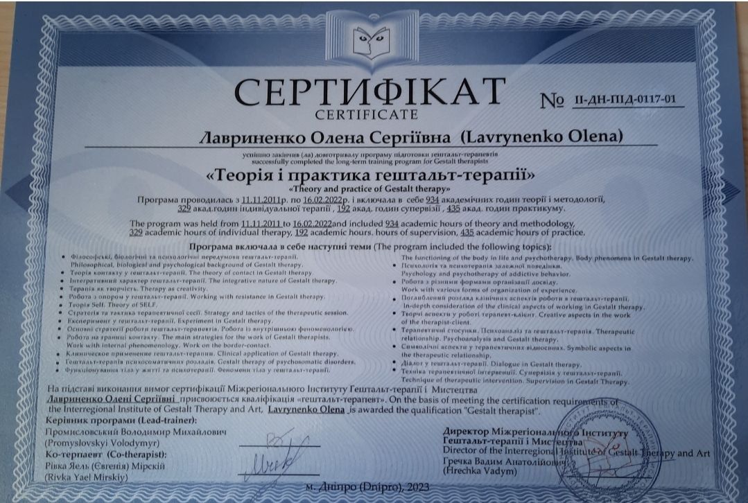 Certified Gestalt therapist