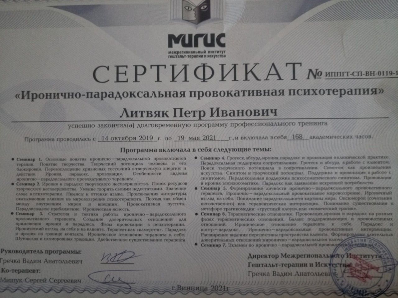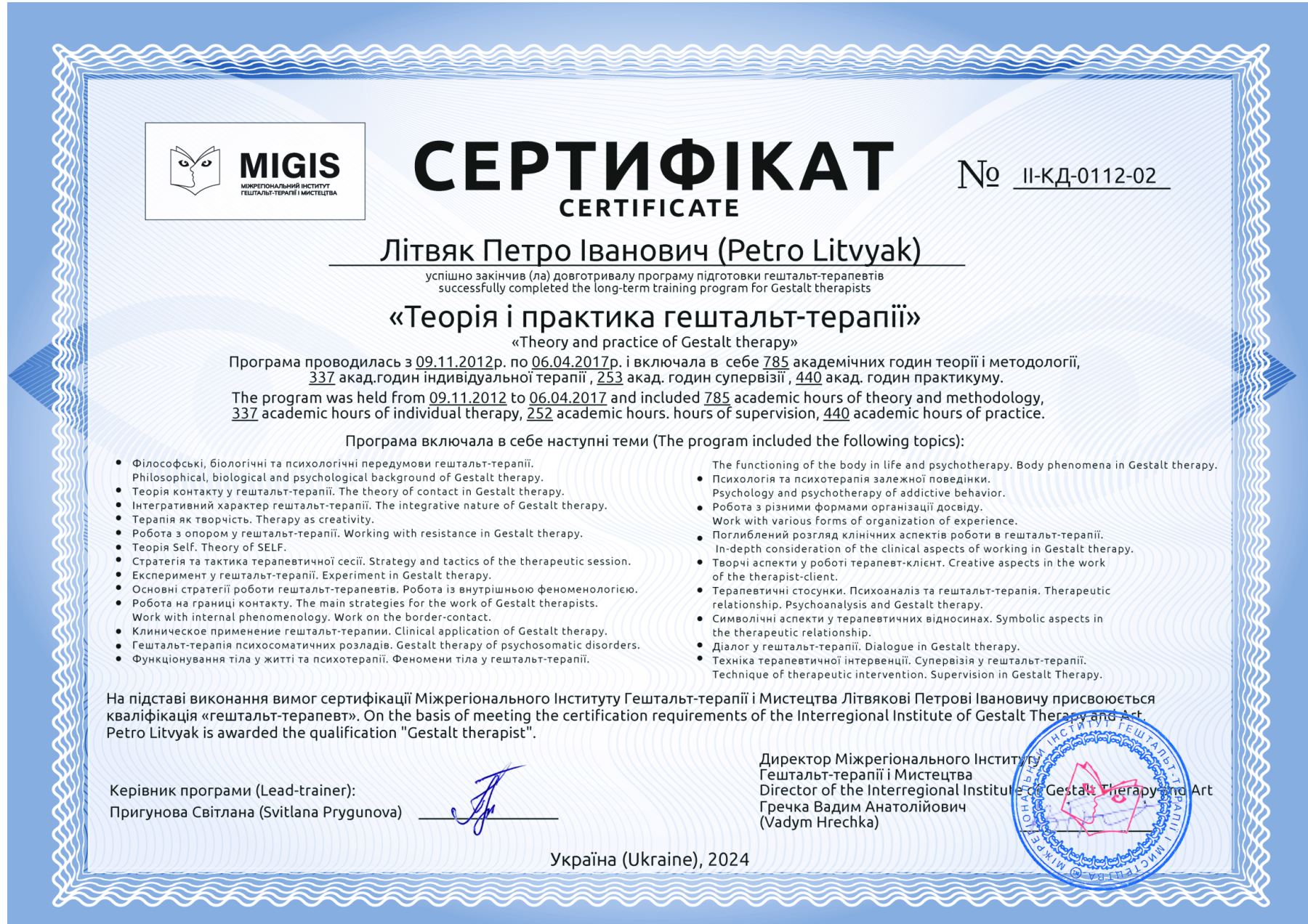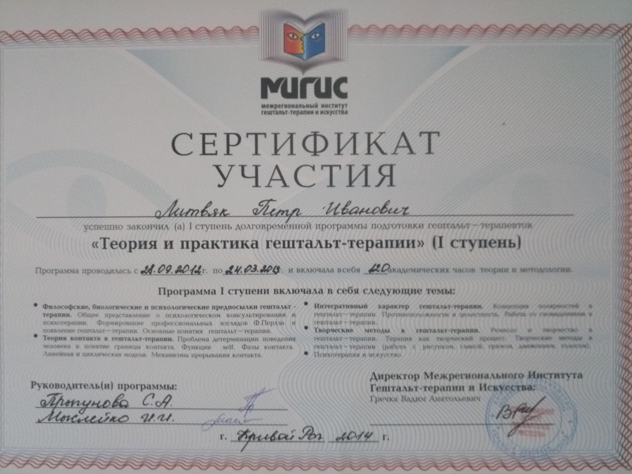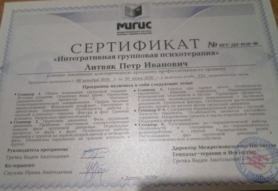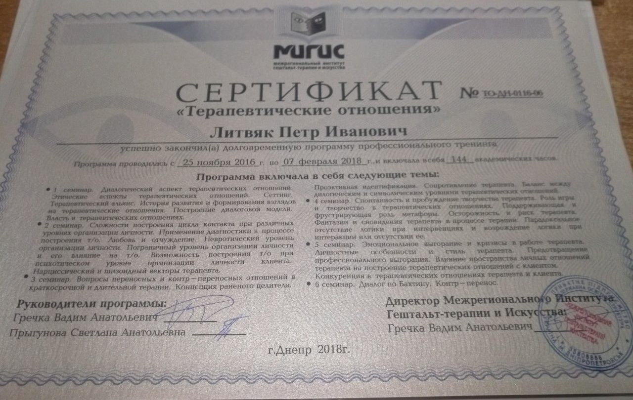 Certified Gestalt therapist
