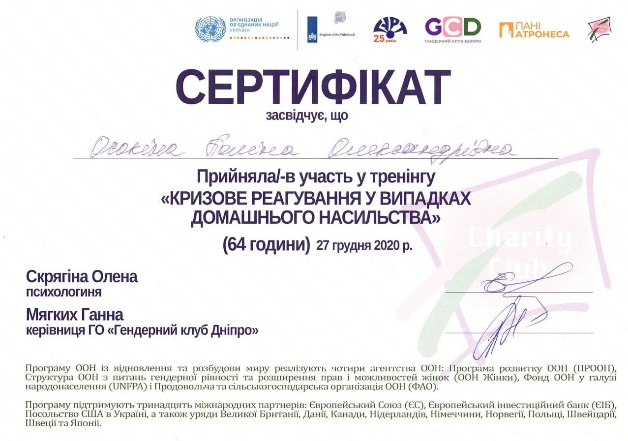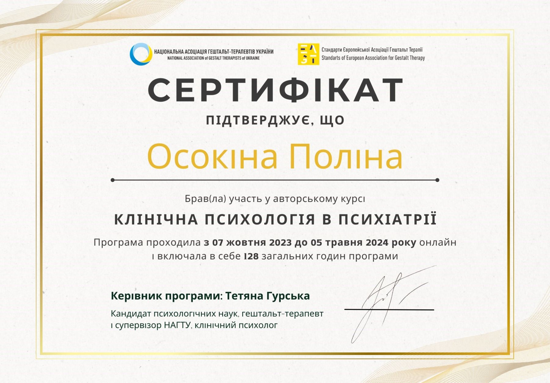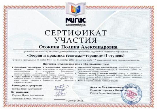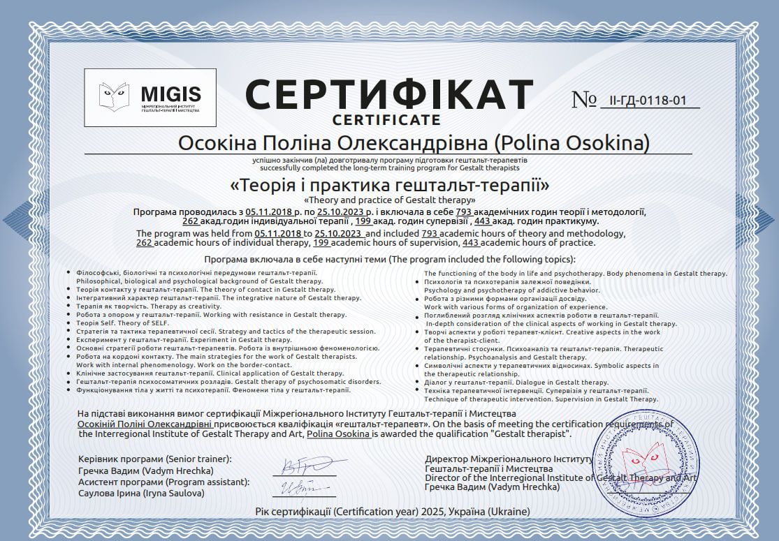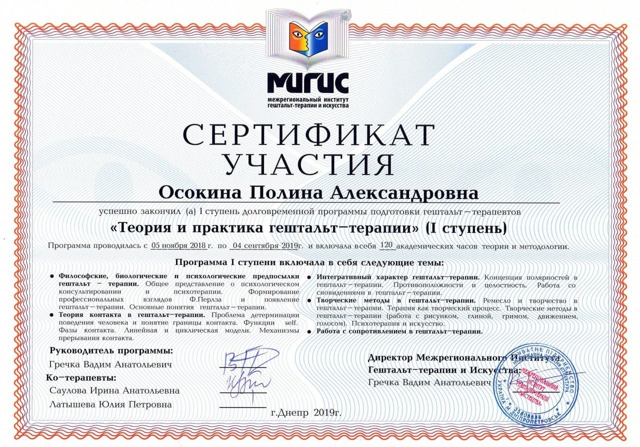 Certified Gestalt therapist