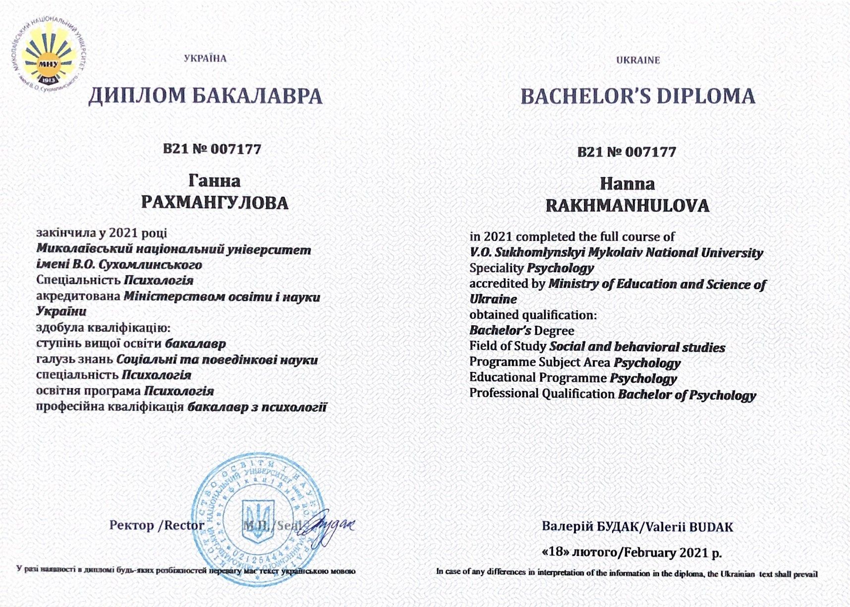 Rakhmanhulova Hanna