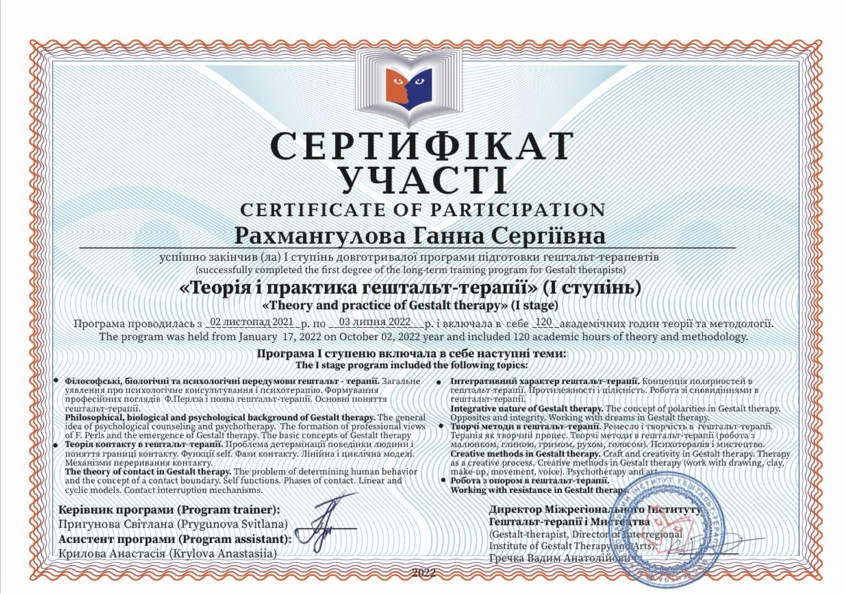 Psychologist | Trainee Gestalt therapist | Specializes in working with couples and families