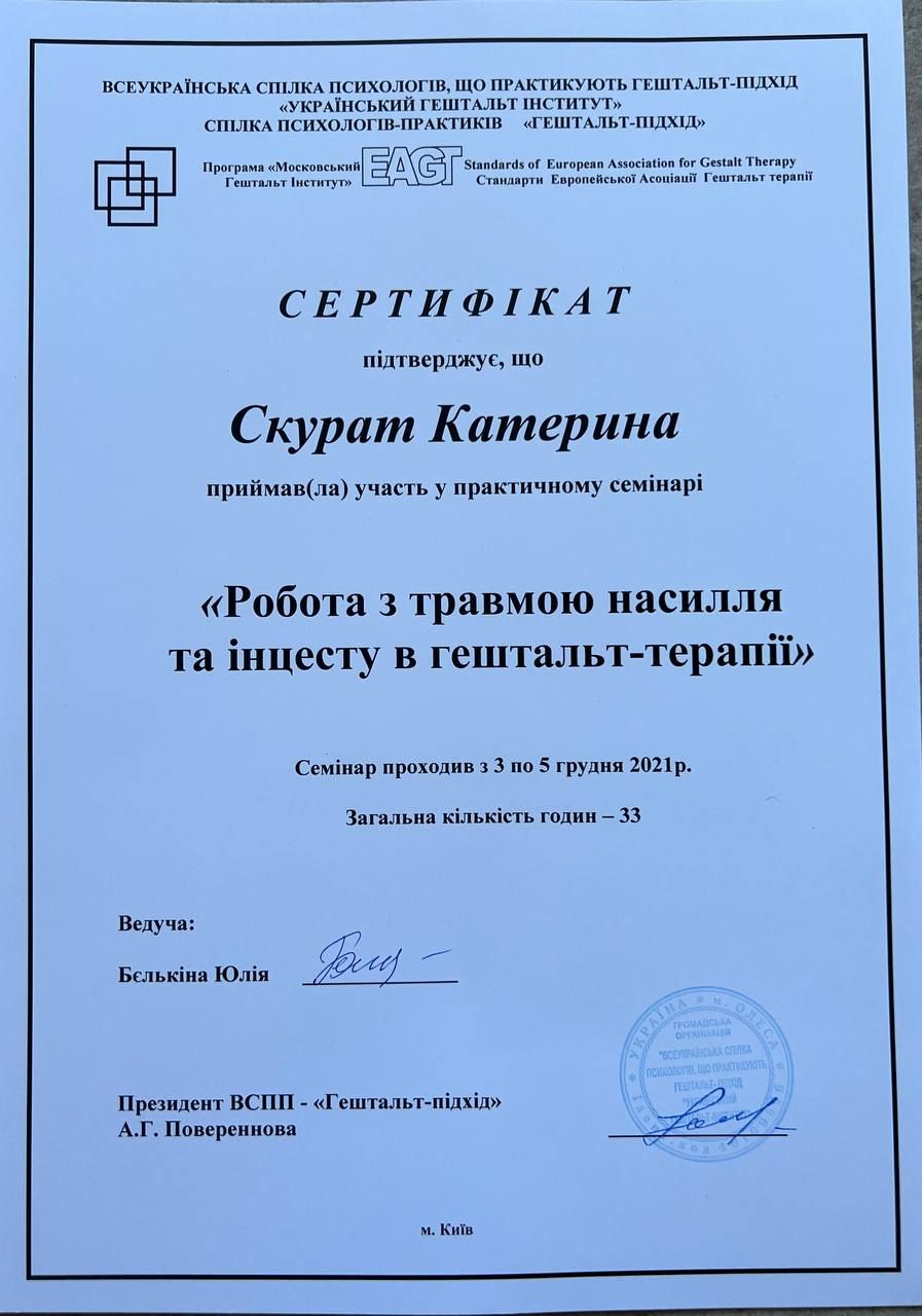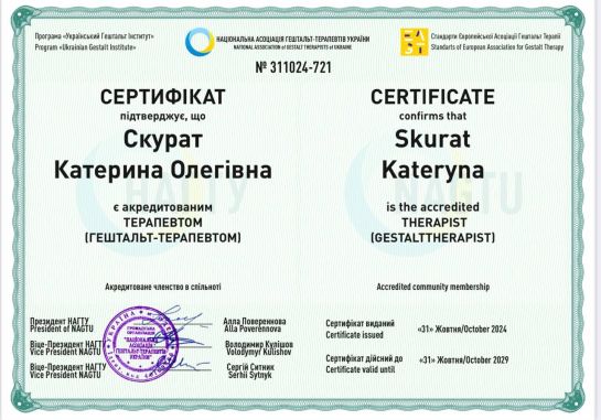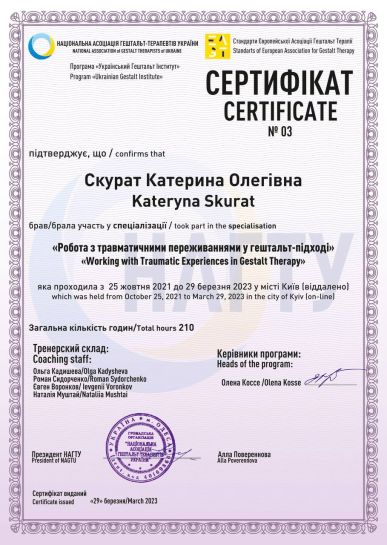 Psychologist | Certified Gestalt therapist | Specializes in working with traumatic experiences