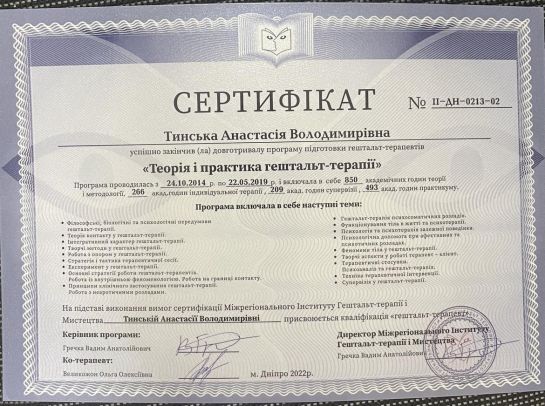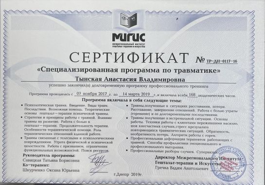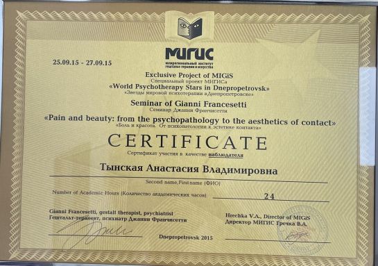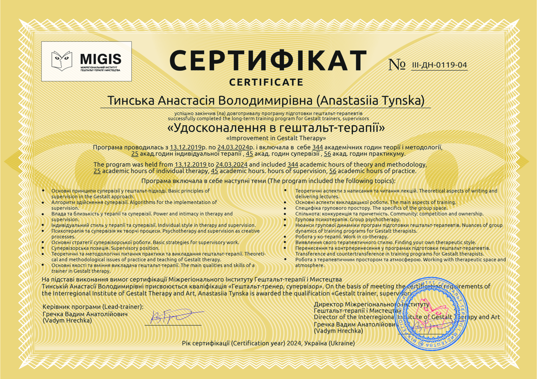 Psychologist | Certified Gestalt Therapist | Certified Supervisor | Accredited Trainer-assistant of MIGIS