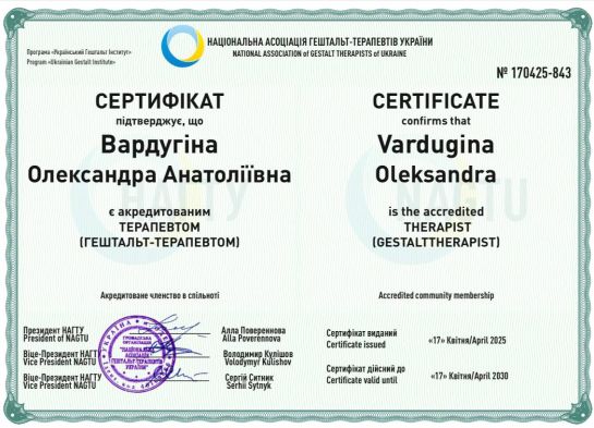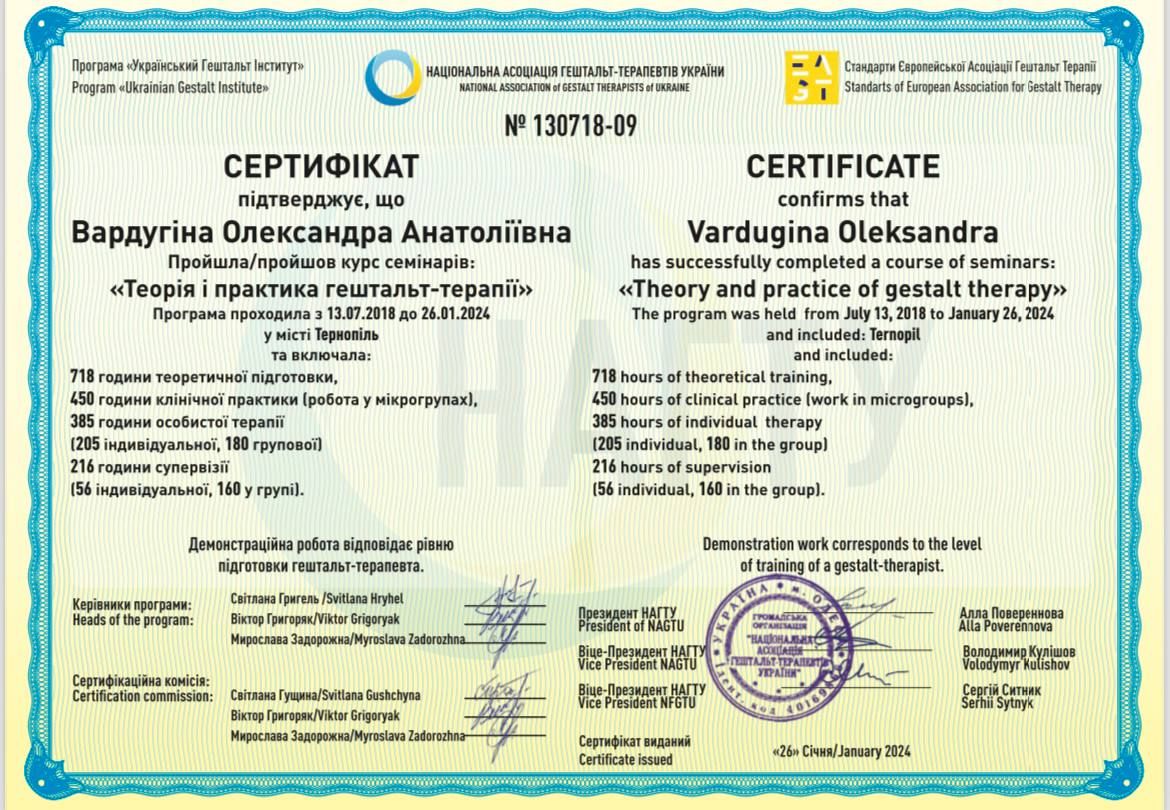 Certified Gestalt therapist