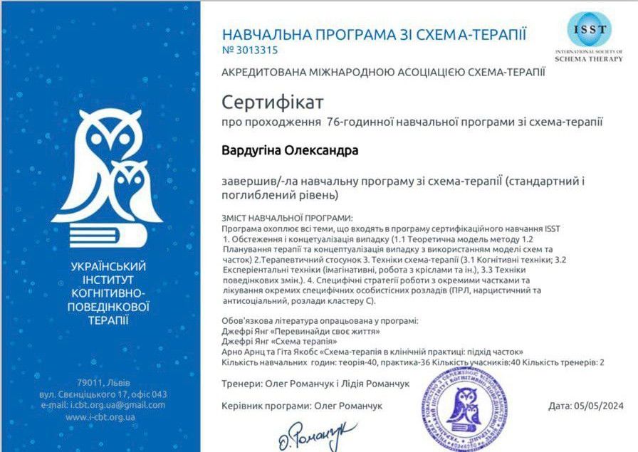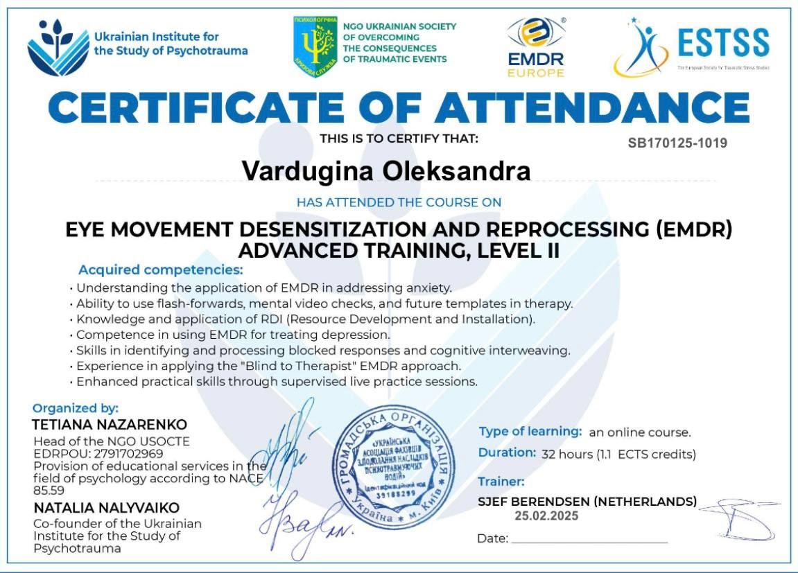 Psychologist | Certified Gestalt therapist | Specializes in scheme therapy | Uses the EMDR method in work