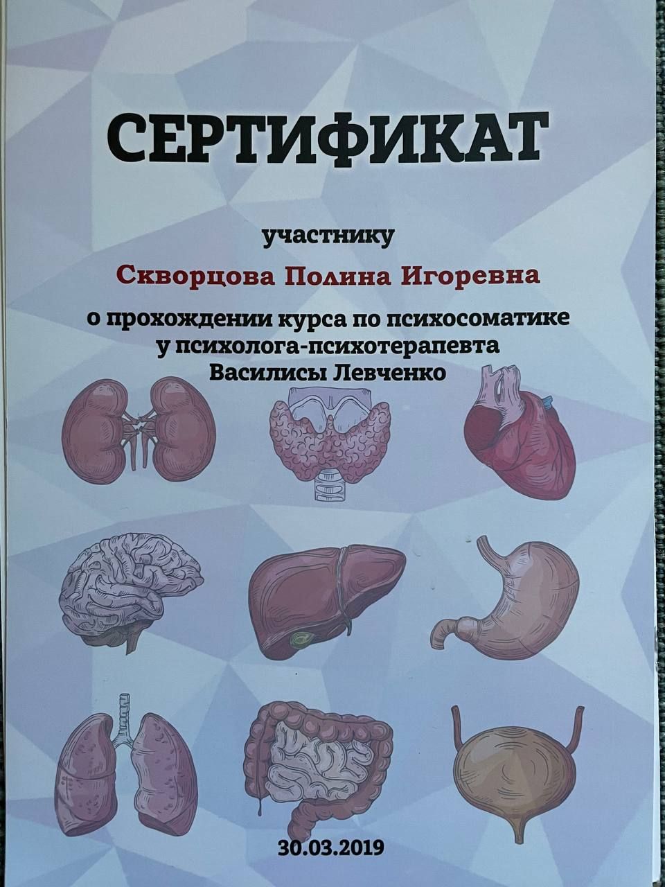 2019 г. - Курс «Психосоматика». Ведущая Левченко В.